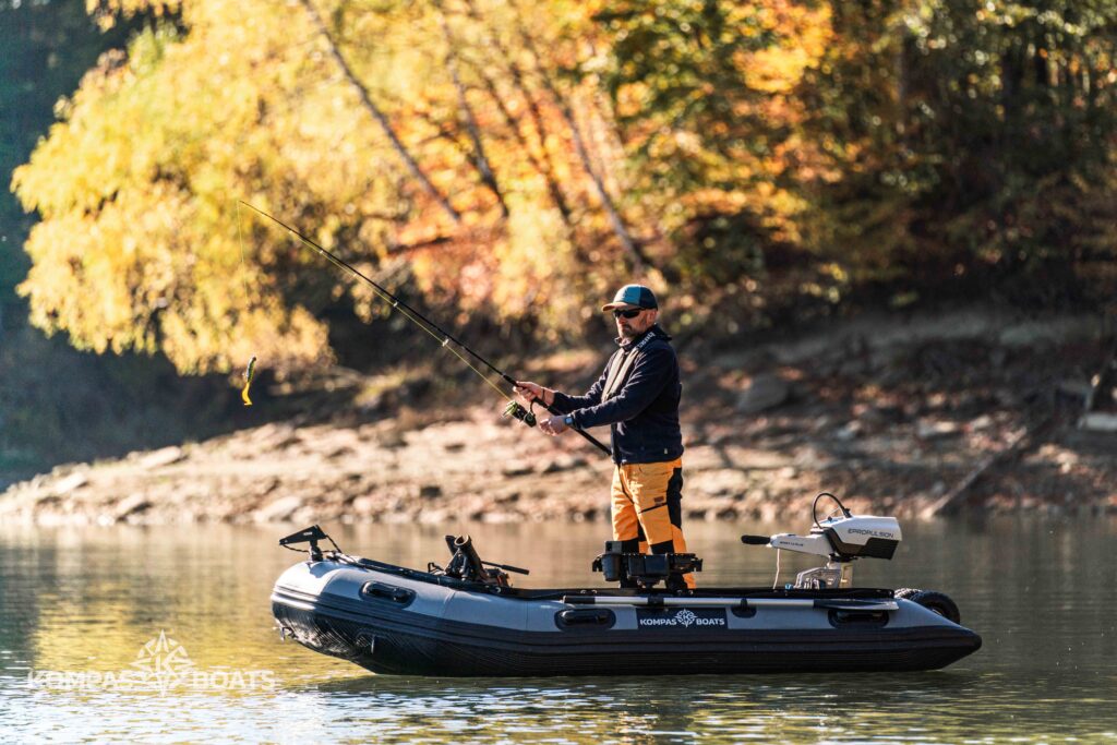 Dzięki temu możecie dostosować łódź do własnych potrzeb – airmata idealnie sprawdzi się przy szybkim desancie na łowisku, natomiast aluminiowa podłoga będzie niezastąpiona podczas długich sesji spinningowych. Pokrycie pianką EVA nie tylko nadaje nowoczesny wygląd, ale także chroni podłogę przed nagrzewaniem się na słońcu.