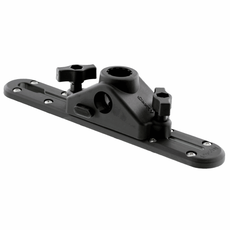 343 Locking Gunnel Track Mount to solidne i bezpieczne mocowanie do szyn burtowych, idealne do montażu uchwytów na wędki, echosond i innych akcesoriów Scotty. Dzięki blokowanemu mechanizmowi zapewnia stabilność i pewne trzymanie sprzętu nawet podczas dynamicznych manewrów na wodzie.