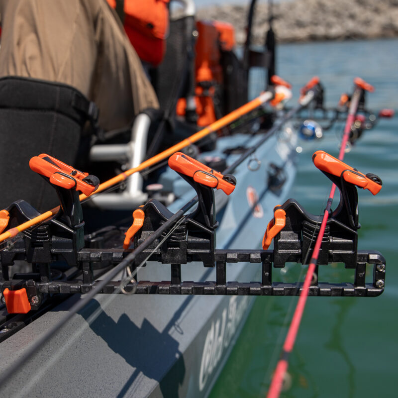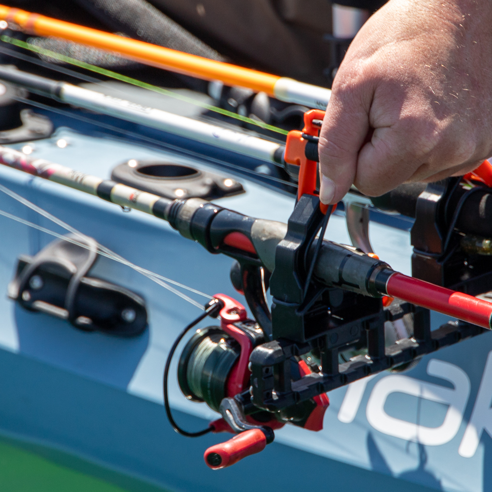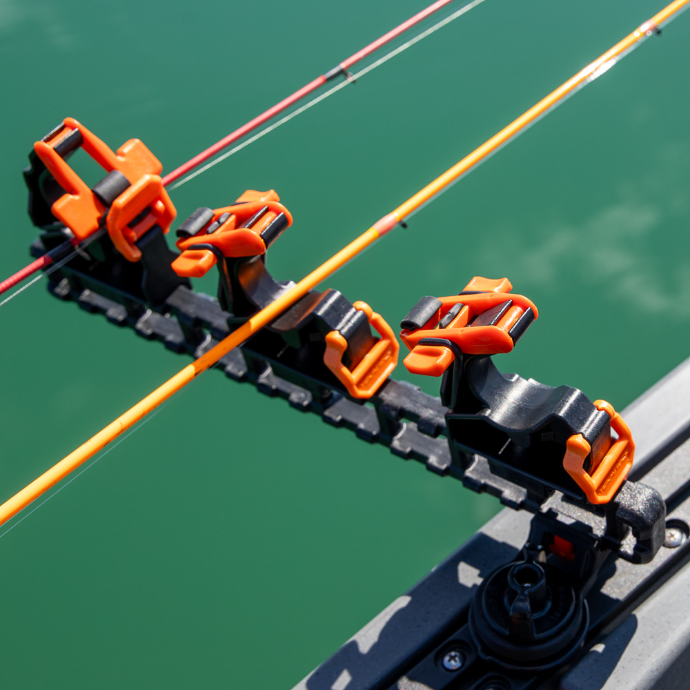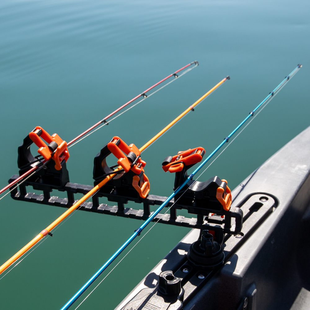 Stojak SideStage™ Rod Rack to ostateczna odpowiedź na ten problem. Przenosi on Twój zapasowy arsenał z tyłu kajaka dokładnie tam, gdzie jest najbardziej potrzebny – na boczne szyny montażowe lub bok skrzyni wędkarskiej. Gwarantuje: