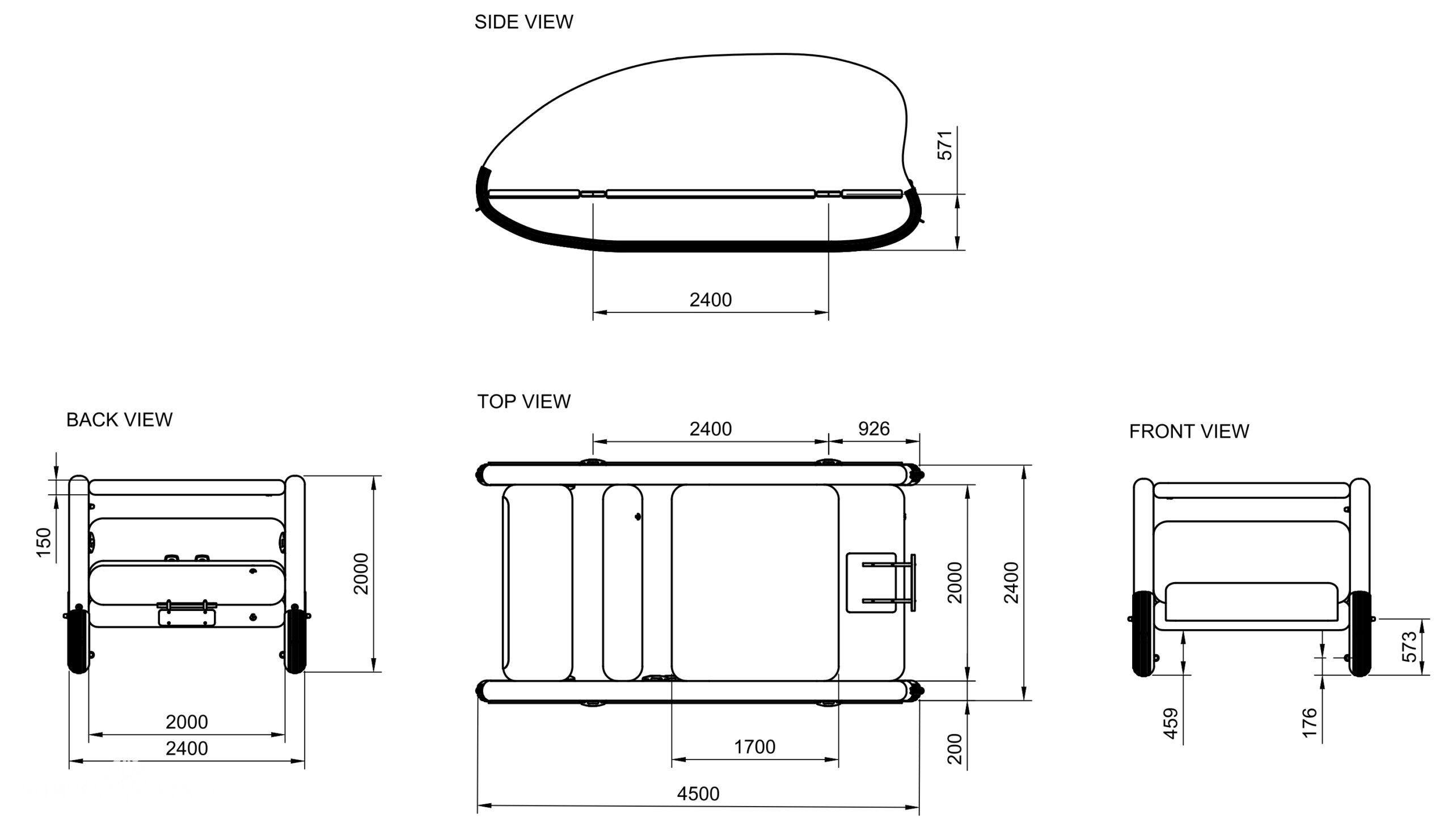 - Mobilność: łódź składana do wymiarów 150 cm x 100 cm x 50 cm, masa całkowita (bez silnika) to 120 kg. największy element 30kg