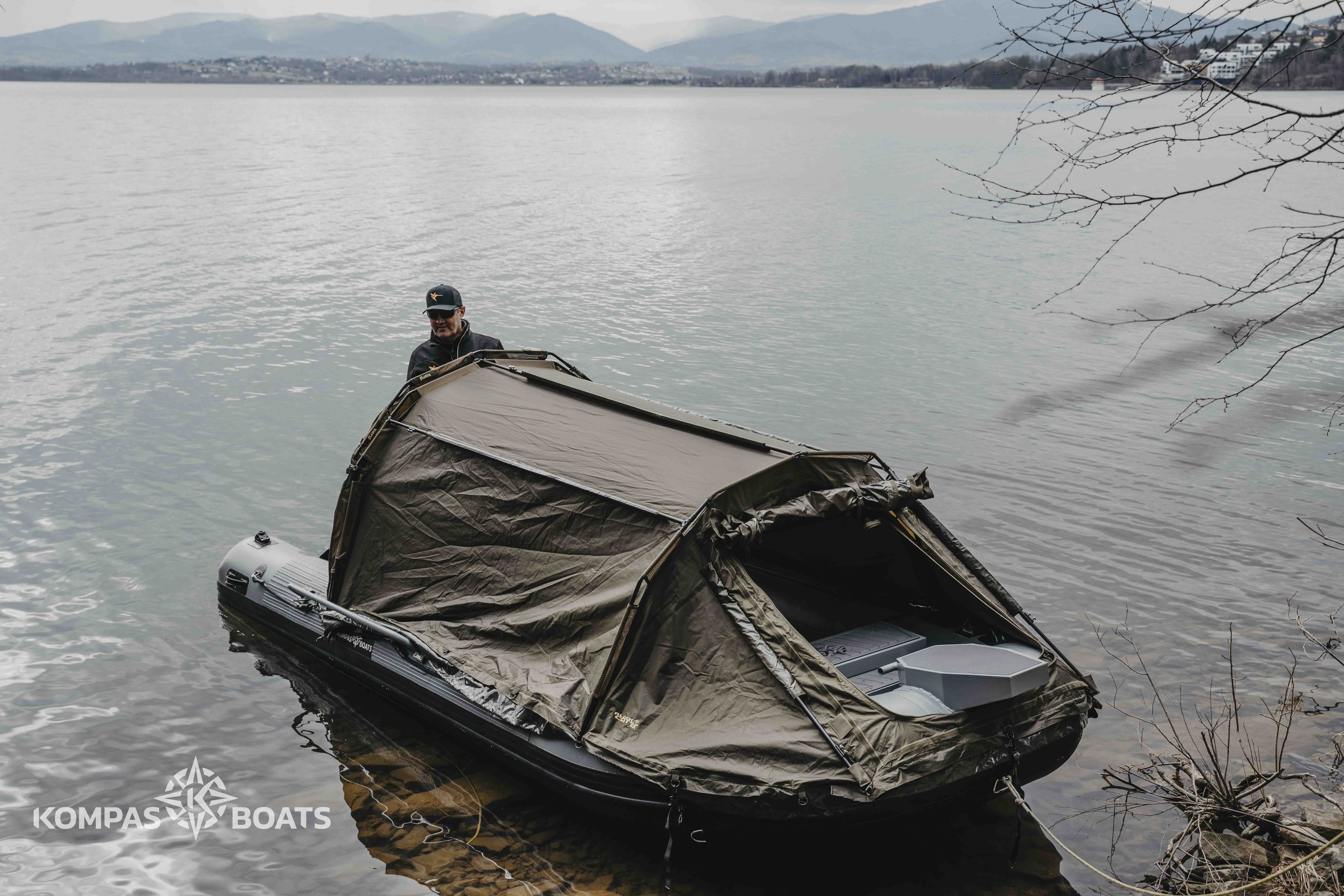 Namiot idealnie pasuje do naszego największego pontonu KBF 490
