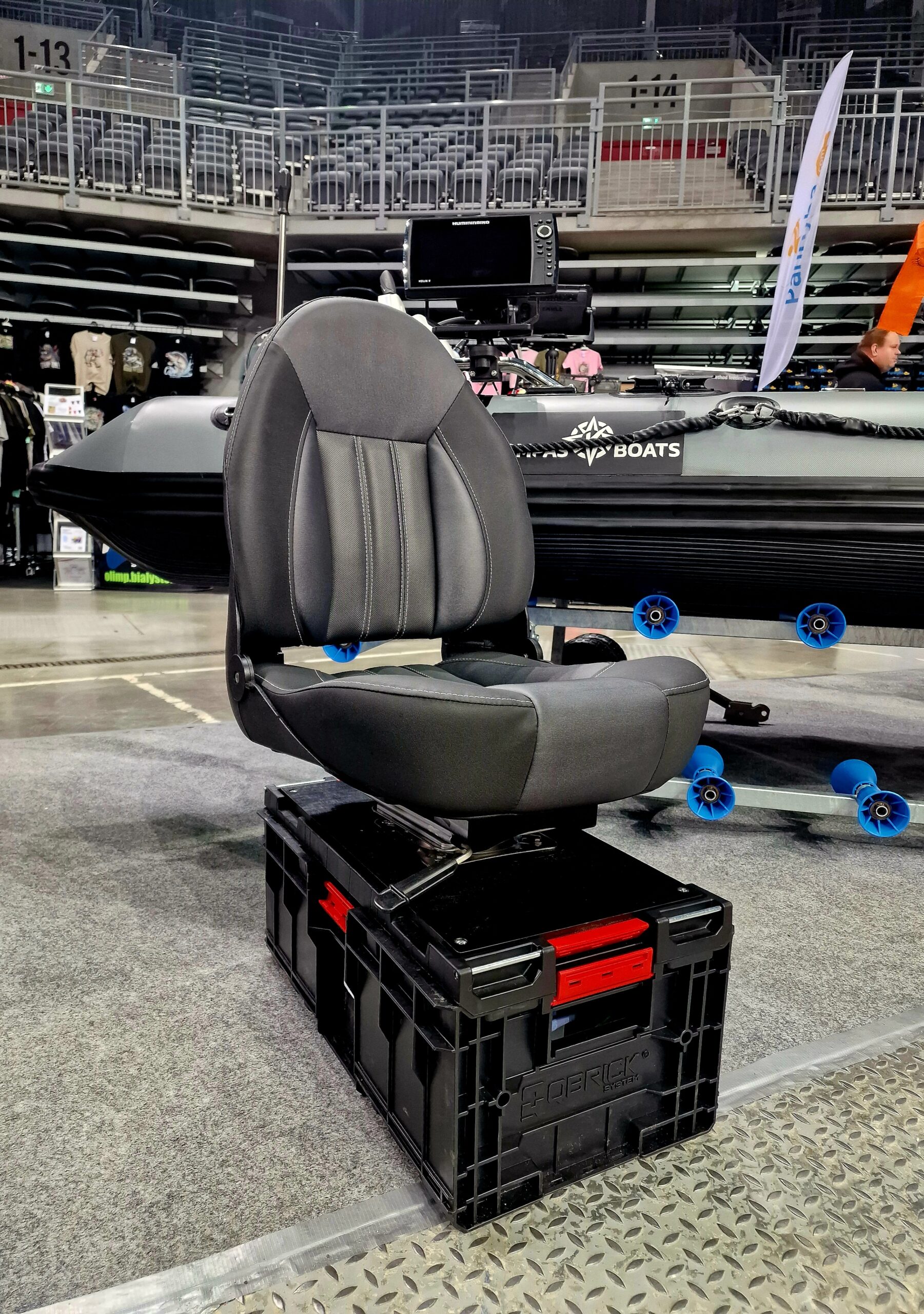 fotel do pontonu zainstalowany na skrzynce narzędziowej
