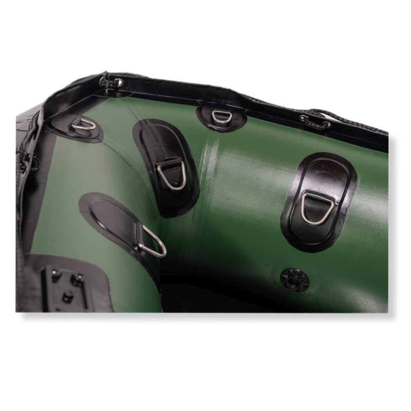 - Wytrzymałe D-ringi rozmieszczone wzdłuż całego pokładu