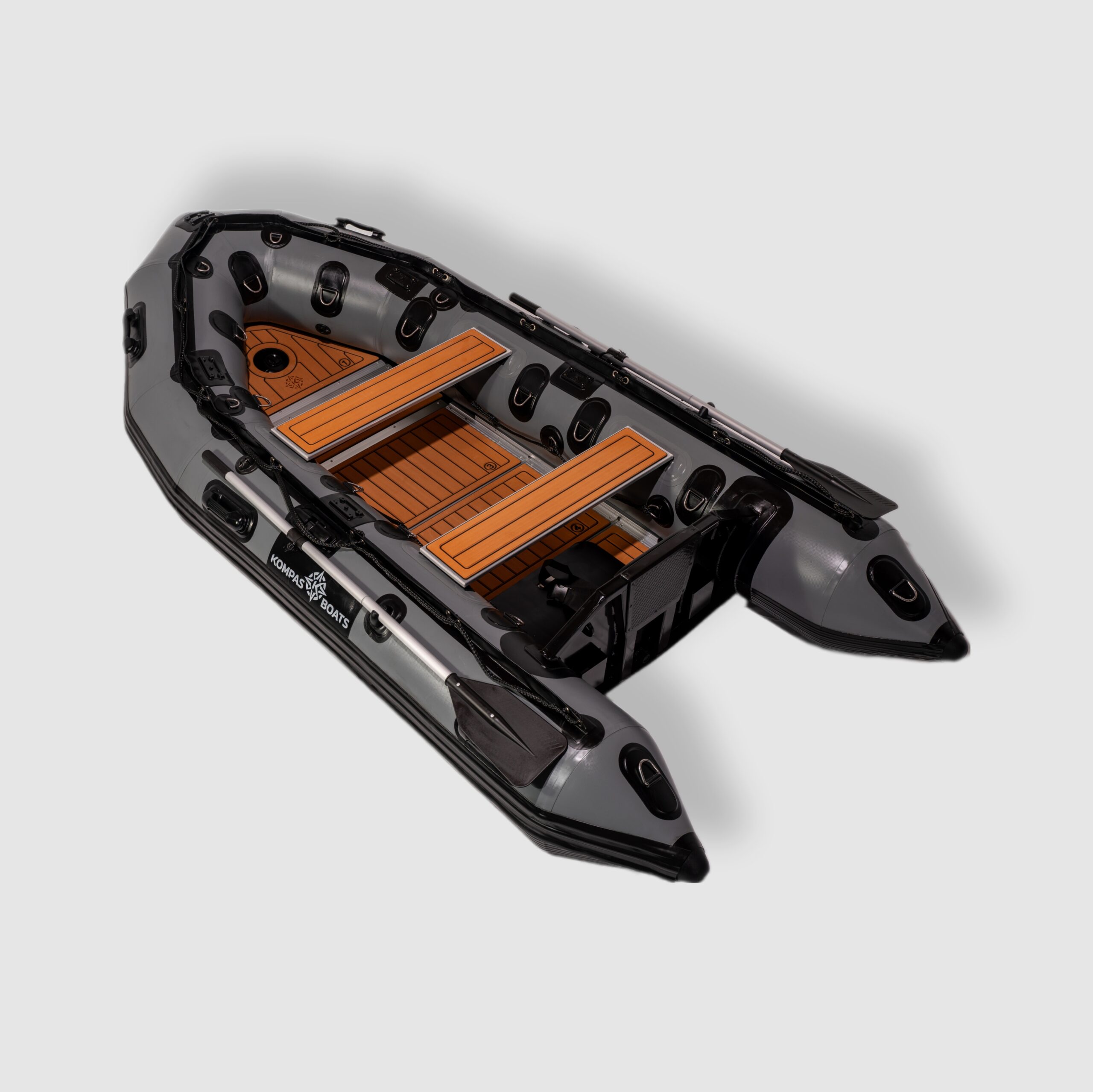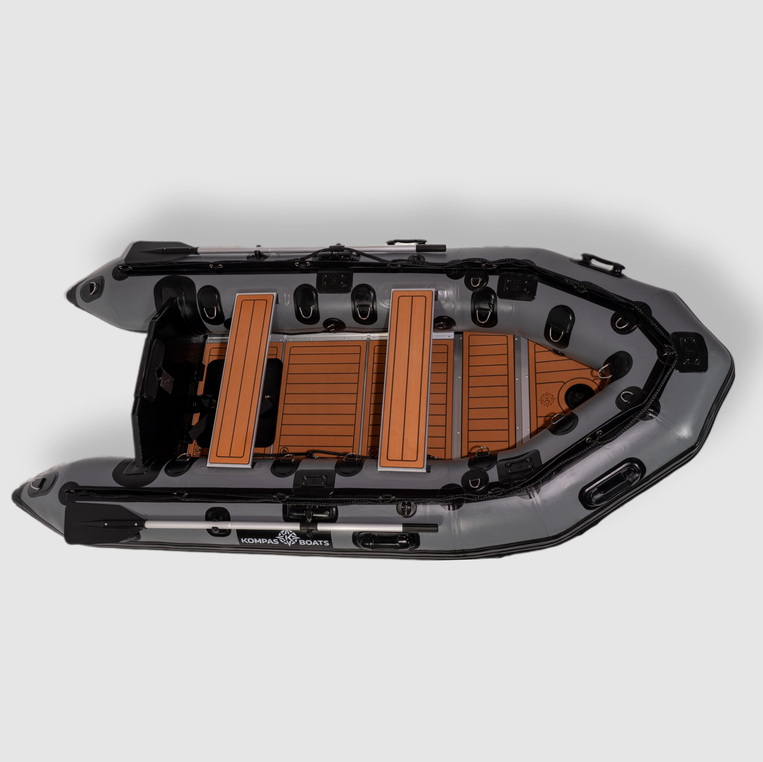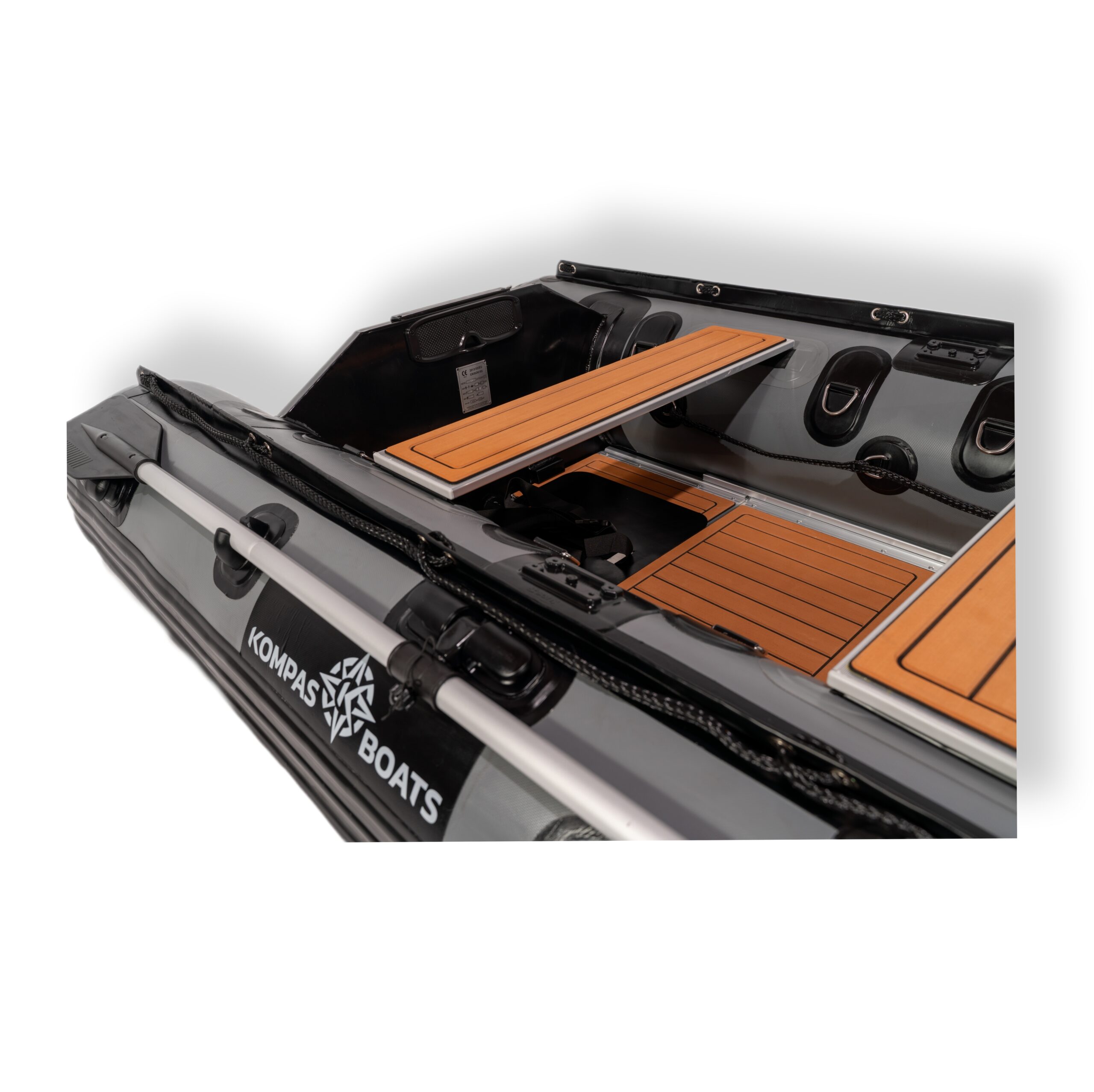 - Wytrzymałe D-ringi rozmieszczone wzdłuż całego pokładu