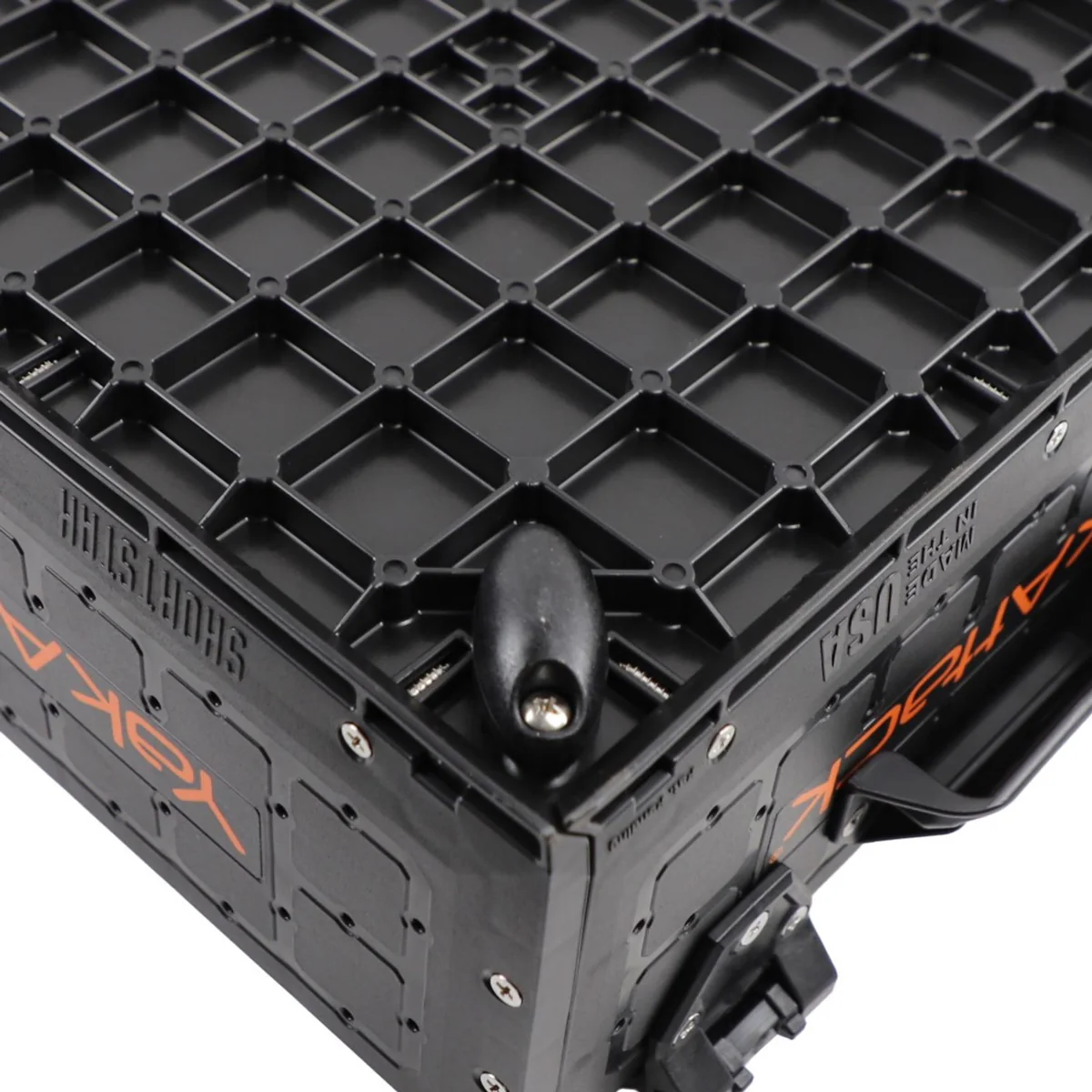 Pancerna ochrona: Polimer klasy morskiej, z którego słynie YakAttack, jest odporny na pęknięcia, promieniowanie UV i skrajne temperatury. Wytrzymałe zatrzaski uszczelniają konstrukcję, chroniąc zawartość przed zachlapaniem (Water Resistant).