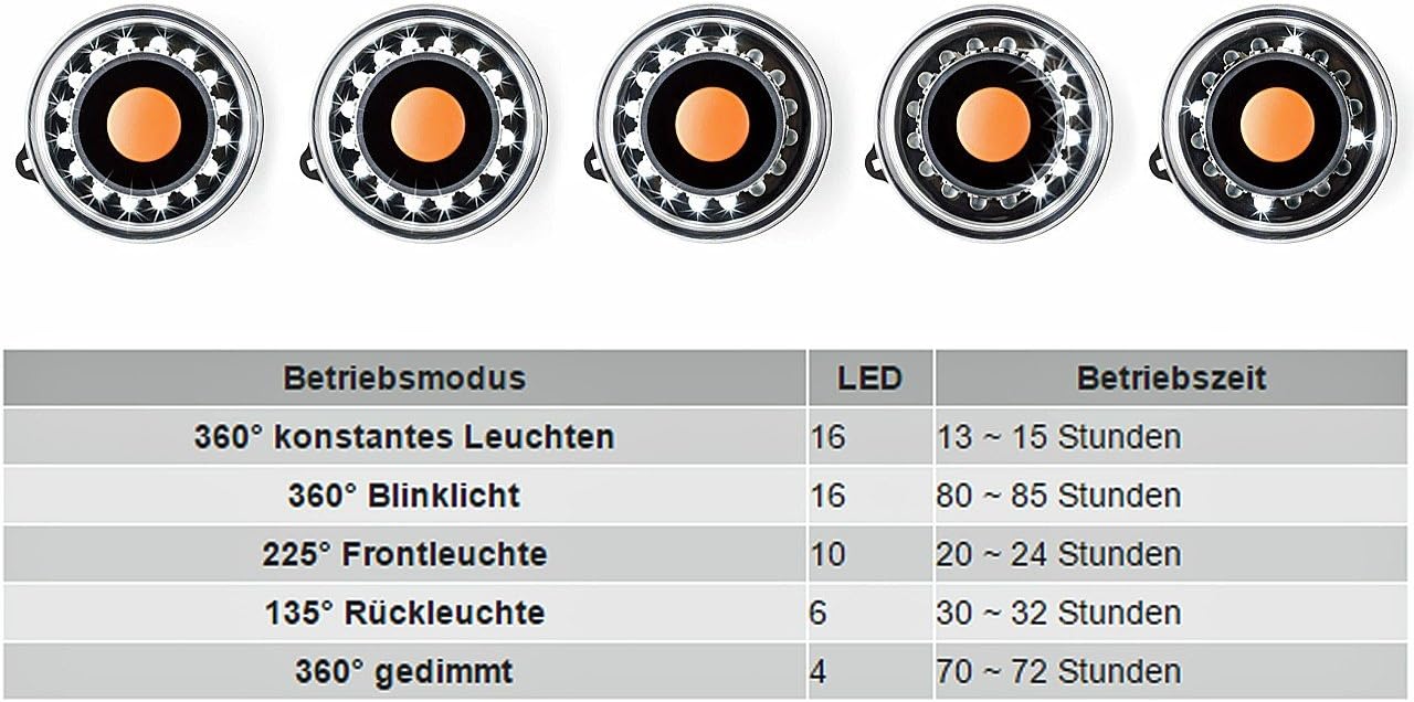 5 trybów świecenia – dostosuj intensywność i sposób świecenia do swoich potrzeb (m.in. światło ciągłe, migające).