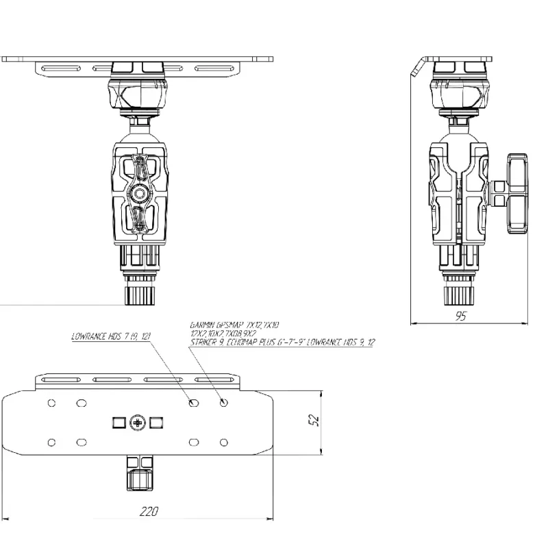 Uchwyt aluminiowy do echosondy BORIKA FASTen SLr220 z kulą 1,5″ (38 mm) – do monitorów 9–12″ ( 01.04.039.01.06)