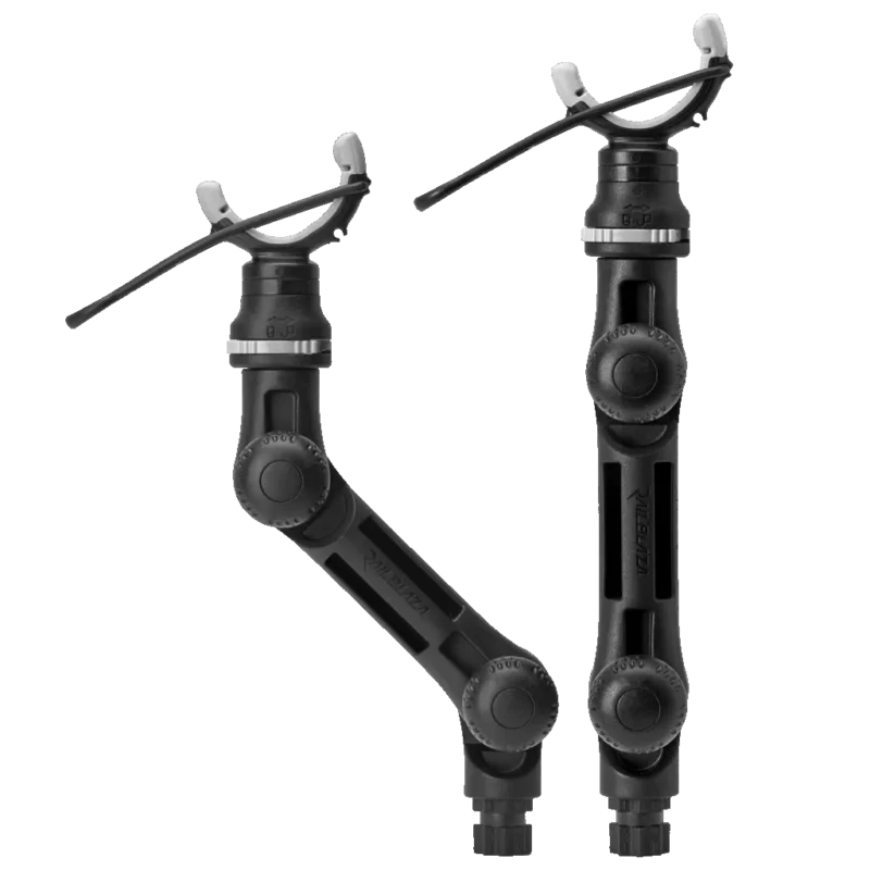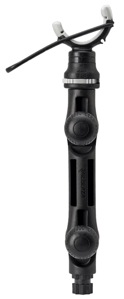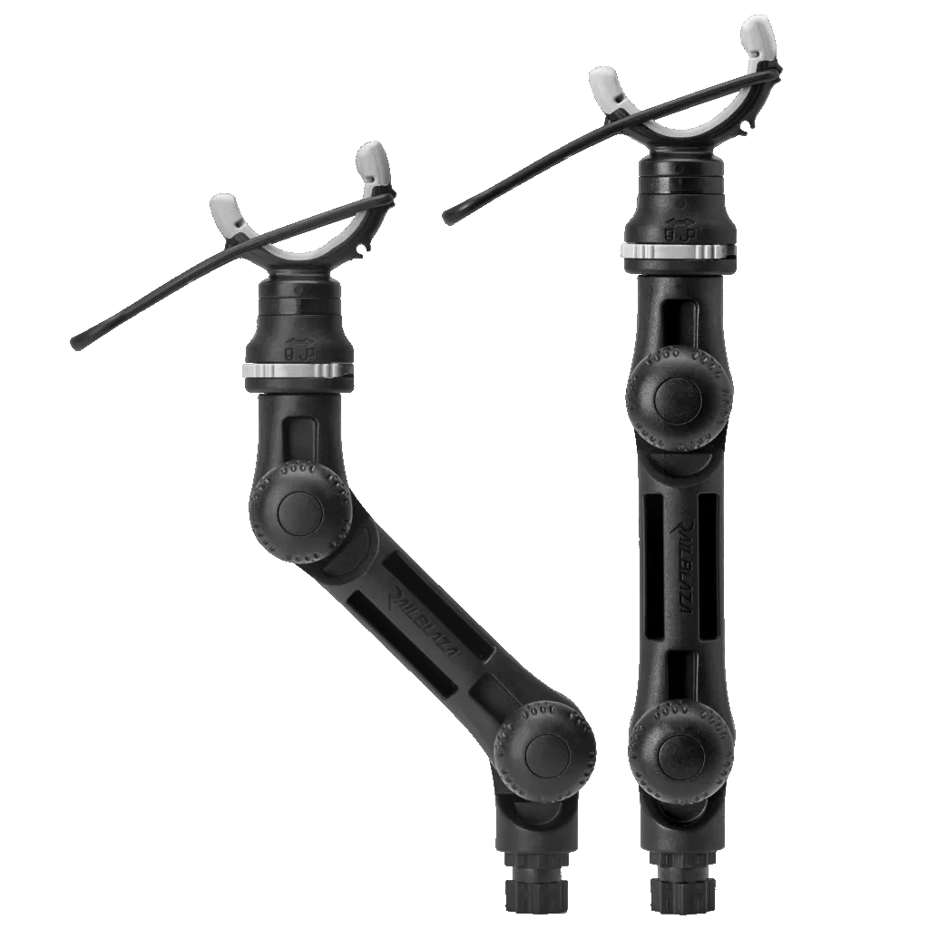 Pełna Regulacja i Uniwersalność: Wspornik możesz wpiąć w dowolne gniazdo systemu RAILBLAZA (StarPort, SidePort, bazy na szyny). Dzięki ruchomym przegubom ustawisz go w pionie, poziomie lub pod dowolnym kątem, idealnie dopasowując do geometrii swojego pokładu.