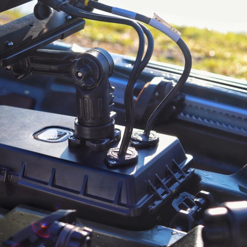 Ten zestaw przepustów kablowych został pierwotnie zaprojektowany, aby idealnie pasować do rewolucyjnego systemu montażowego GridLoc™ na skrzyniach YakAttack BlackPak Pro (modele 13×13 i 16×13). Dzięki niemu, przeprowadzanie przewodów z zewnątrz skrzyni (np. z akumulatora lub przetwornika echosondy) do jej wnętrza staje się czyste, bezpieczne i szybkie.